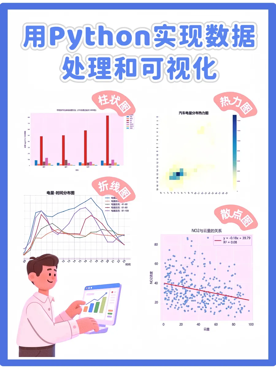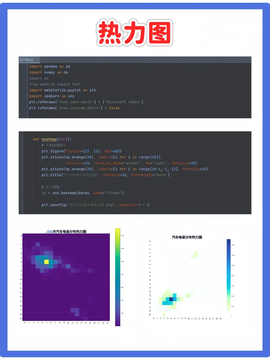 Python 可视化常用图表(附源码) 当你对大数据进行数据分析的时候,python速度将会很快,所以python的可视化分析经常是搭配【数据处理+画图】的过程;而Excel不适合处理大数据。 而且用python画图的优点是,当你调整好一版配置之后,以后就可以批量出图了,效率杠杠的。 今天带大家分享利用Python打造的4种高级图表。