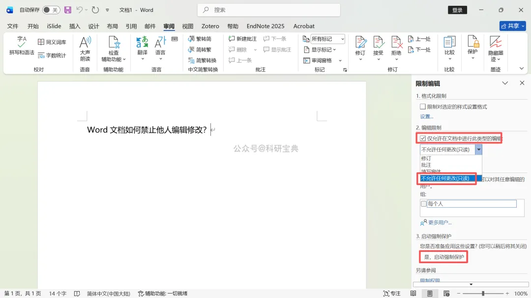 Word自带【限制编辑】功能,开启后文档就进入不可编辑模式。既防意外修改,也防他人复制,非常适合只读分享,跟着小典看看怎样设置。