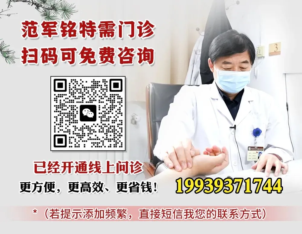 我是中医范军铭,临床经验40年,擅长中西医结合治疗双相情感障碍、精神分裂症、抑郁症、焦虑症等精神疾病,也是第六批全国名老中医,国务院津贴专家,二级正高、二级教授。关注我,微信扫码提前预约,我帮你制定一套中医治疗方案。