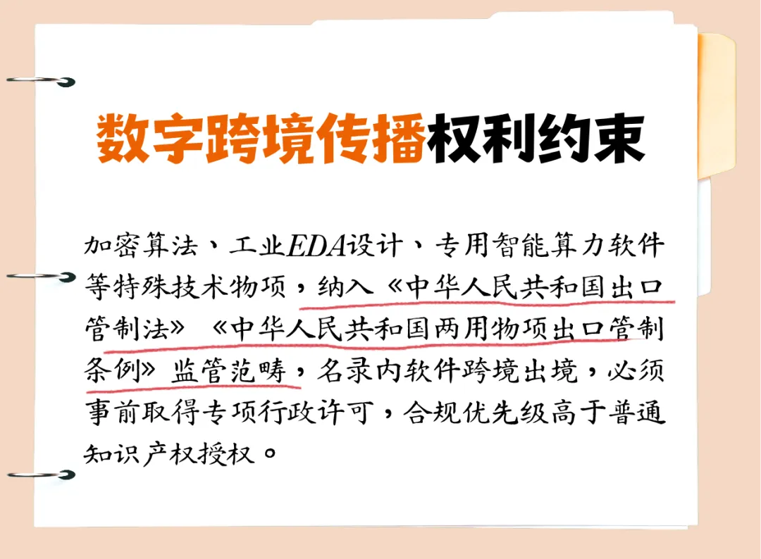 数字产品与软件跨境流动,涵盖实体载体预装软件、线上传输标准化程序、定制化算法模型、SaaS信息网络远程服务、商用数据库API接口等新兴交易形态,是培育新质生产力的重要数字载体。该领域知识产权合规,交叉融合著作权保护、技术进出口管制、民商事合同、网络数据传播等法律体系: