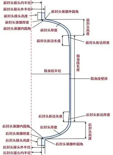 后封头形状、厚度、高度、折边参数