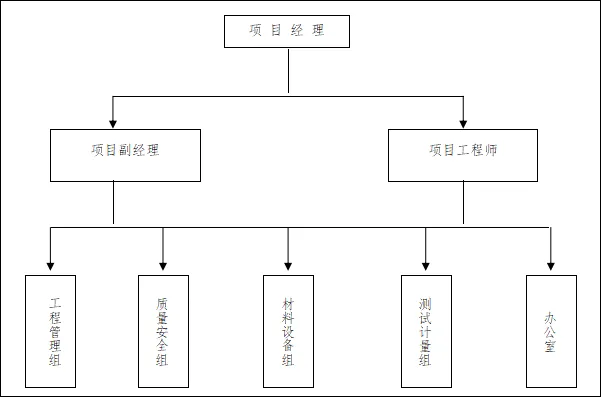 1.2.2、项目经理对项目行使计划、组织、协调、控制、监督、指挥职能、全权处理项目事务。项目经理部对公司实行经济责任承包。项目内部工程技术管理人员通过岗位目标责任制和行为准则来约束,共同为优质、安全、高速、低耗地完成项目任务而努力工作。