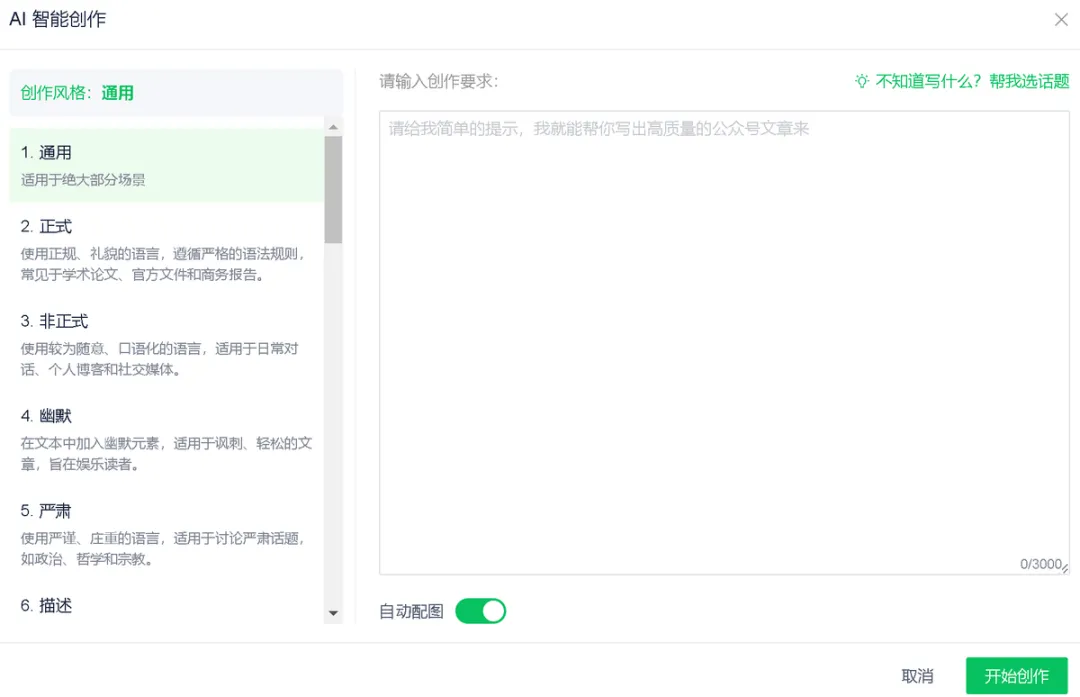 如果日常工作不是只有排版,而是从选题、写正文、找配图到最后排版都要自己完成,那么智撰的流程会比较集中。它适合公众号新手、个人创作者、小团队运营。