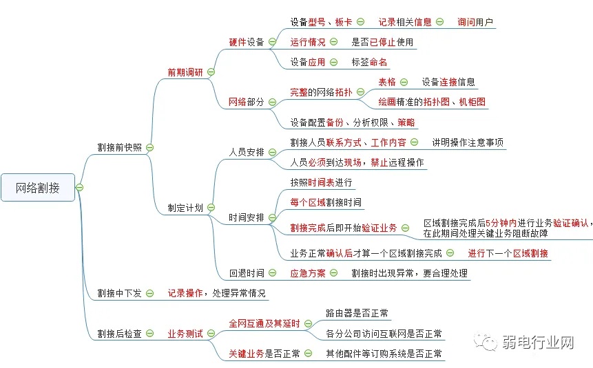看步骤就知道,这项目不简单,本期弱电行业网和大家一起来了解下,什么是网络割接方案,这份方案非常详尽,有网络割接全面步骤与实施流程,遇到割接项目不用慌了。(下载方式在底部)