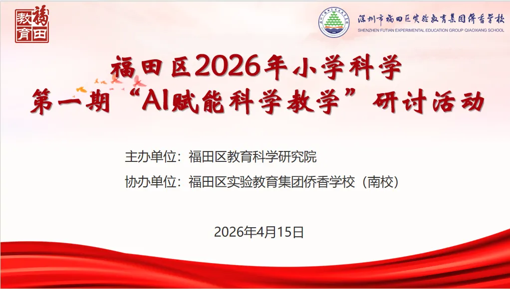 2026年4月15日,春意正浓,思想激荡!福田区2026年小学科学第一期“AI赋能科学教学”研讨活动在我校(南校)隆重举行!