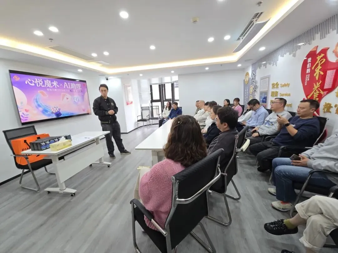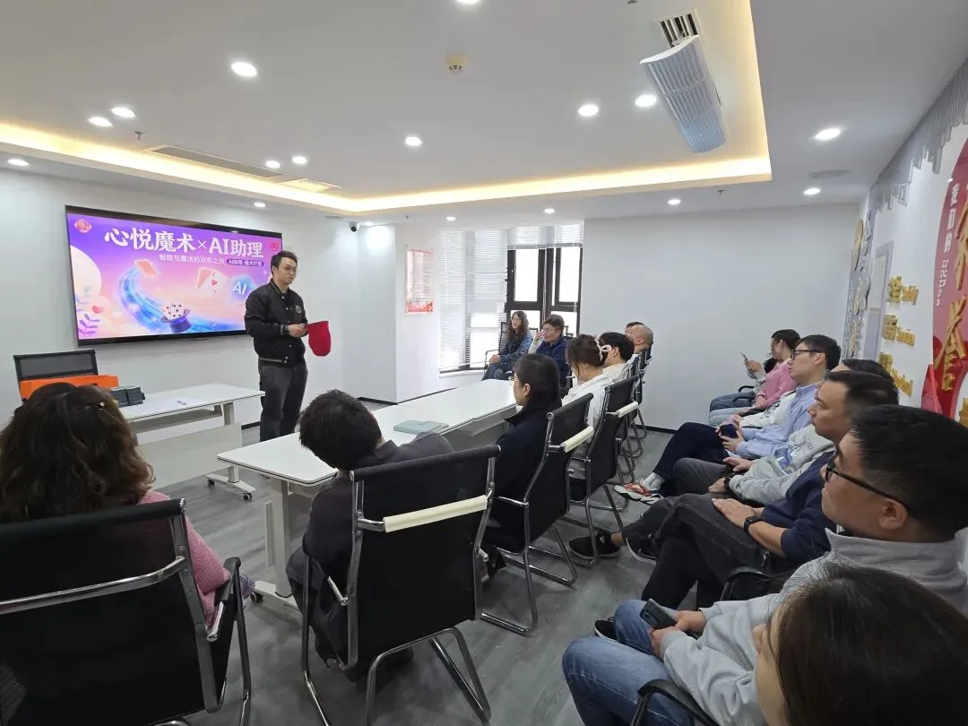 在高压的职场节奏里,一场有趣又高效的疗愈体验,正在成为越来越多企业的新选择。近期,由半淞园路街道营商办主办的「心悦魔术×AI」职场疗愈微课堂,分别走进了上海复兴城(集团)有限公司与瑞华健康保险,为职场伙伴带来了轻松治愈的午休体验。白领们放下伏案工作,参与心悦魔术 ×AI 助理体验课,在一小时的趣味时光里,告别工作疲惫,解锁科技与魔术融合的解压新体验。