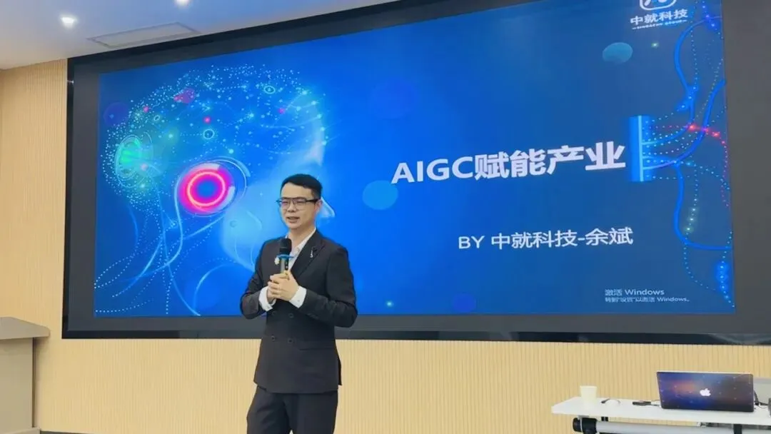培训会上,中就科技董事长余斌斌围绕 “AI基础认知与工具入门”和 “AI 视频生成与创作指令实操巩固”两大核心课程展开讲解。在AI基础认知环节,余斌斌从AI技术的发展脉络切入,深入浅出地阐释了生成式AI的工作原理及其在办公与新媒体场景中的实用价值,帮助参训学员建立对AI技术的正确认知框架。
