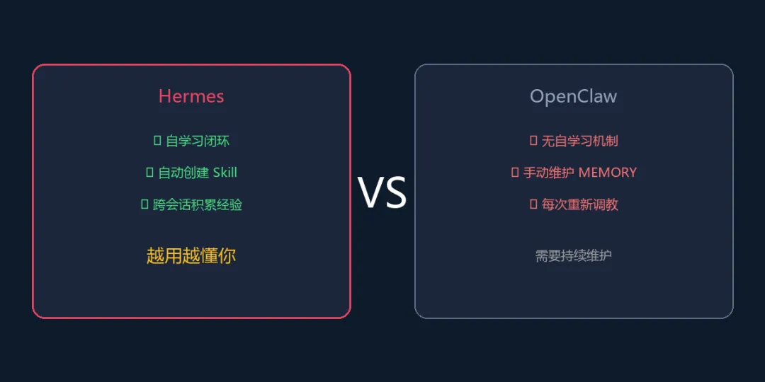 这是两者最本质的区别,也是我认为 Hermes 值得主推的原因。
