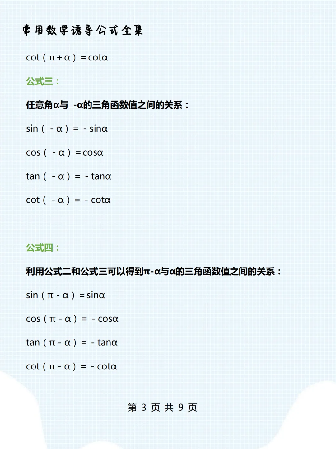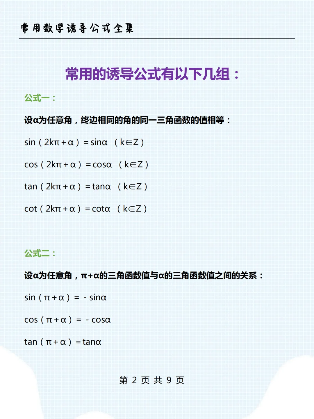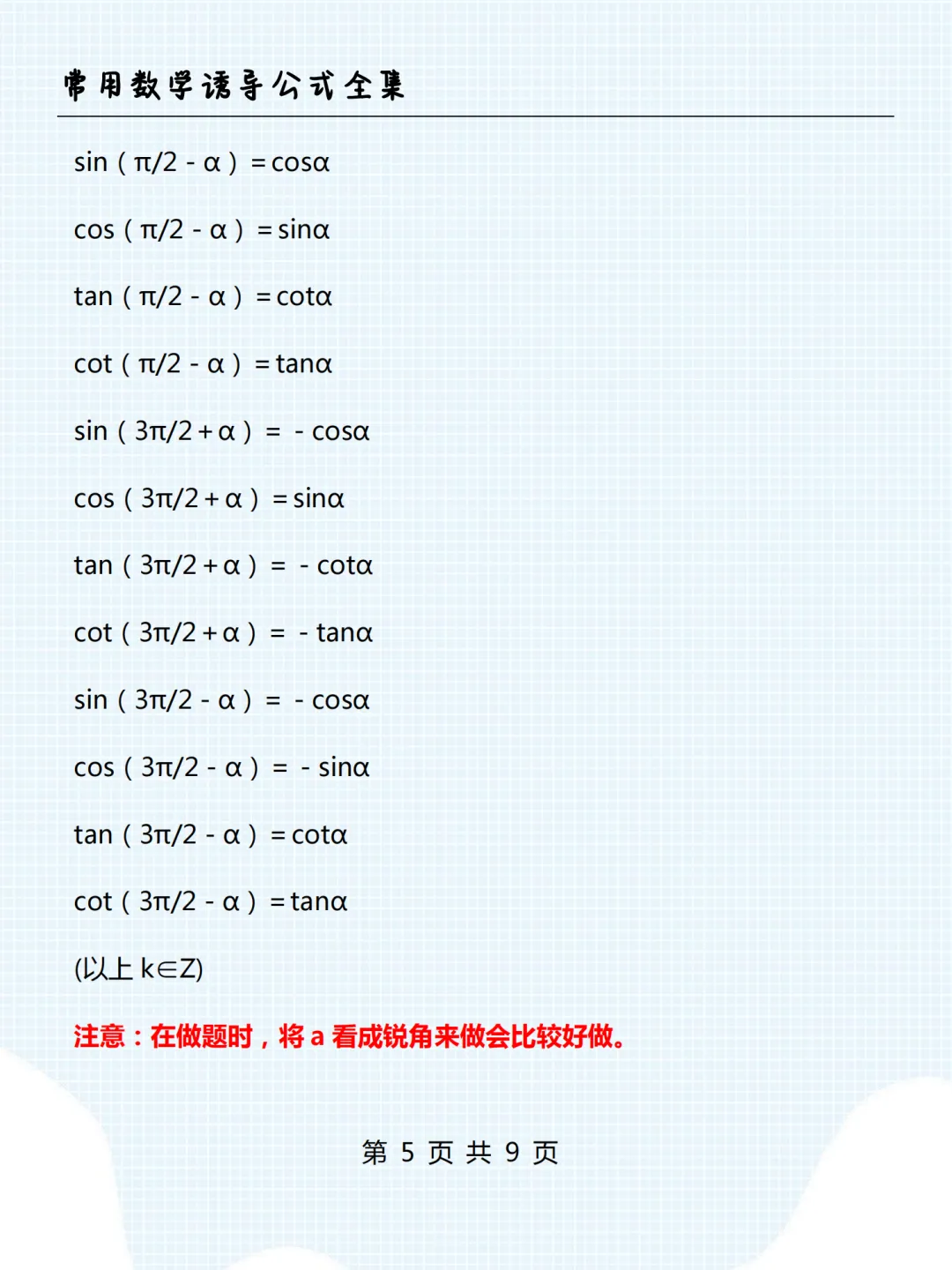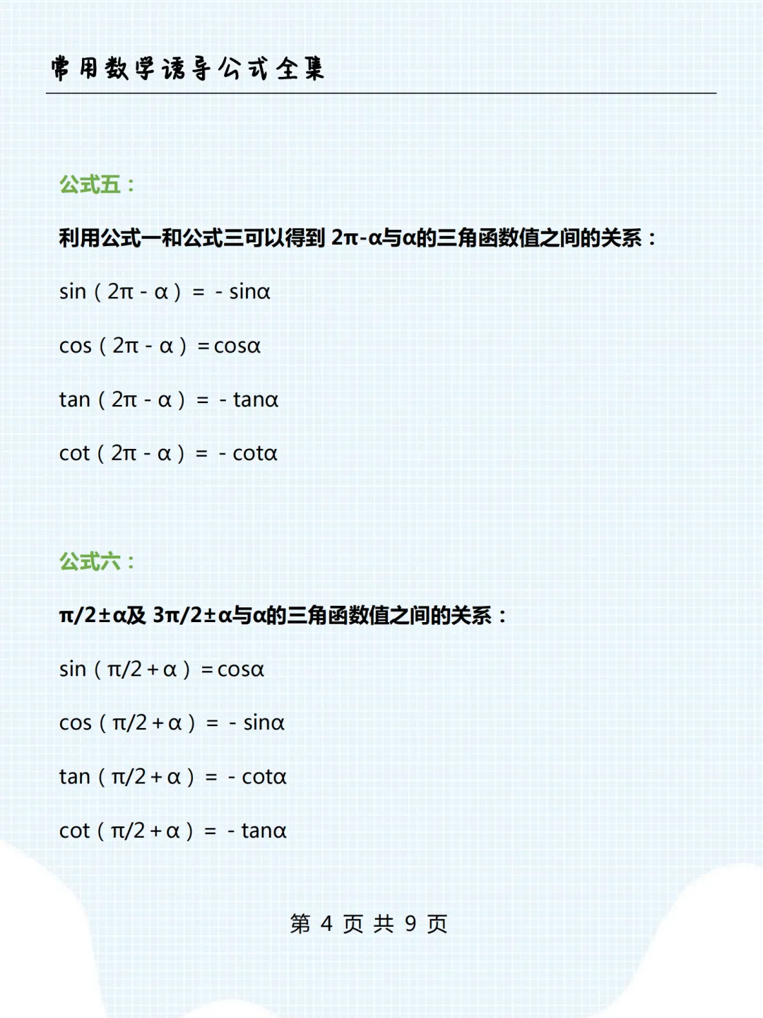 高中数学诱导公式全集,限时下载! 我用夸克网盘分享了「高中数学诱导公式全集.pdf」,点击链接即可保存。打开「夸克APP」在线查看,支持多种文档格式转换。 链接:https://pan.quark.cn/s/7e4c85e9c05f