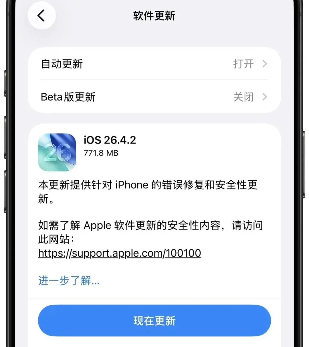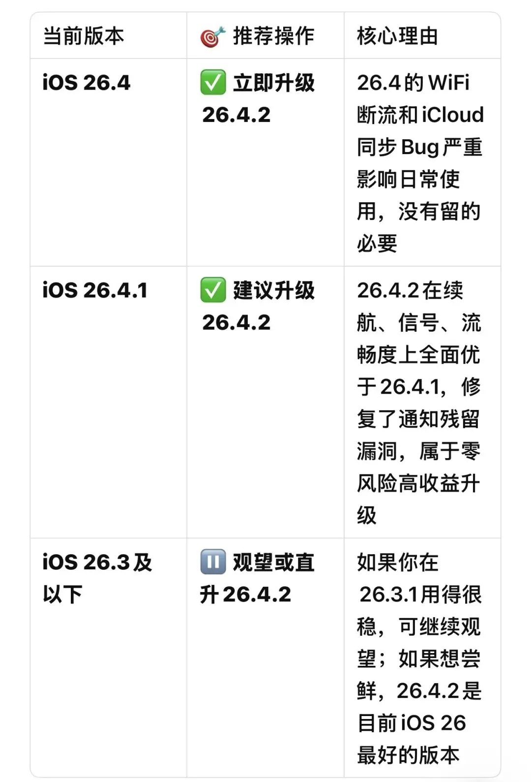 如果你还在用iOS 26.4,我强烈建议你立即升级到26.4.2——解决了WiFi断流和iCloud同步的核心问题。