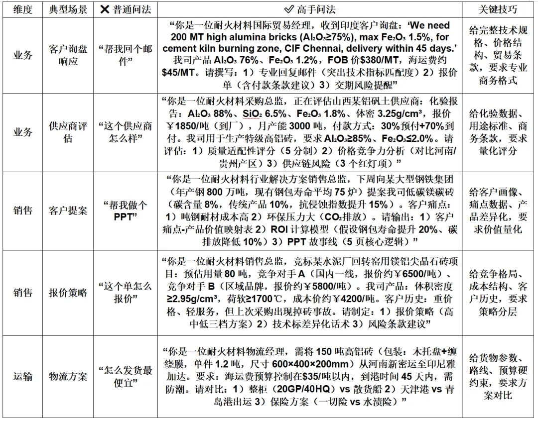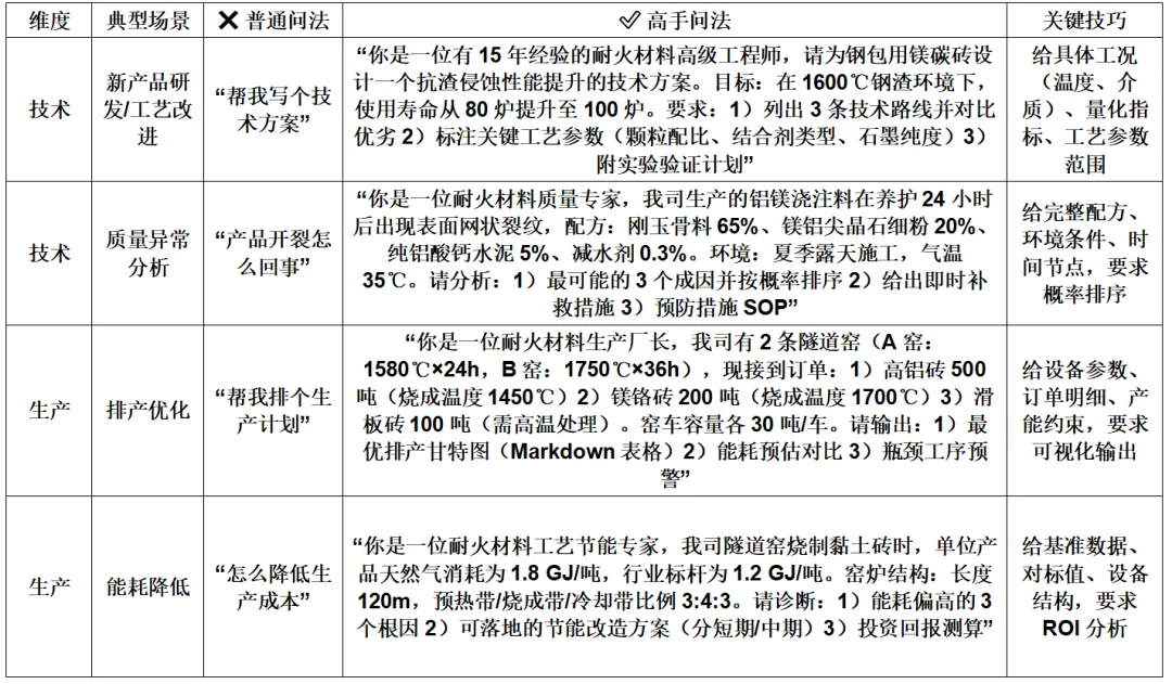 耐火材料行业AI工具提问策略