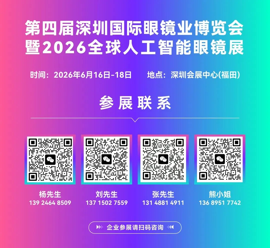 第四届深圳国际眼镜业博览会暨2026全球人工智能眼镜展将于2026年6月16-18日在深圳会展中心(福田)8号馆、9号馆举行。展会以“AI视界,深链未来”为主题,聚焦眼镜产业发展趋势,积极探索人工智能与眼镜行业的深度融合。