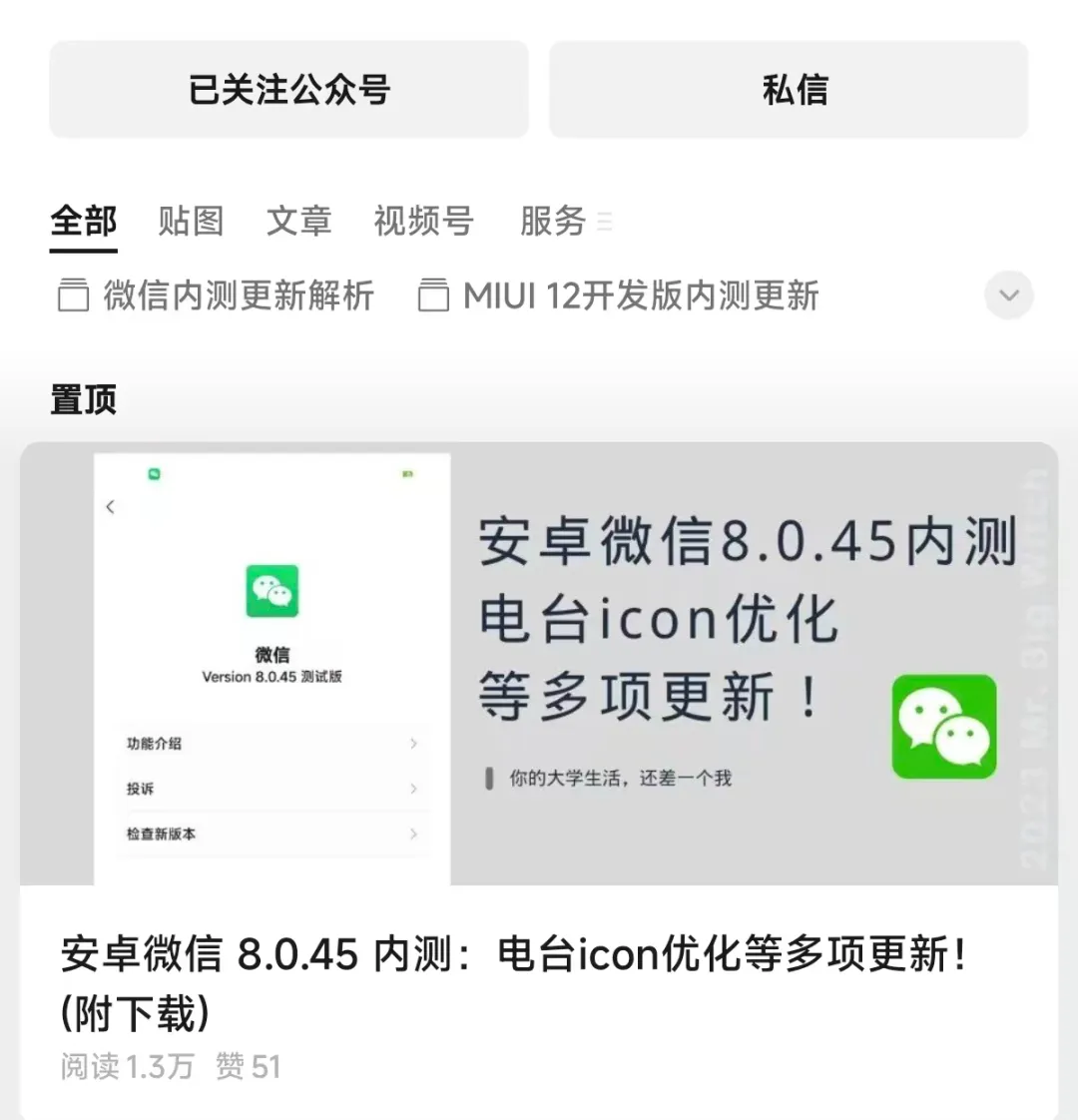 在本次的订阅号主页中新增了一个文章的tab分类,更方便的供大家查看此订阅号发布的内容。
