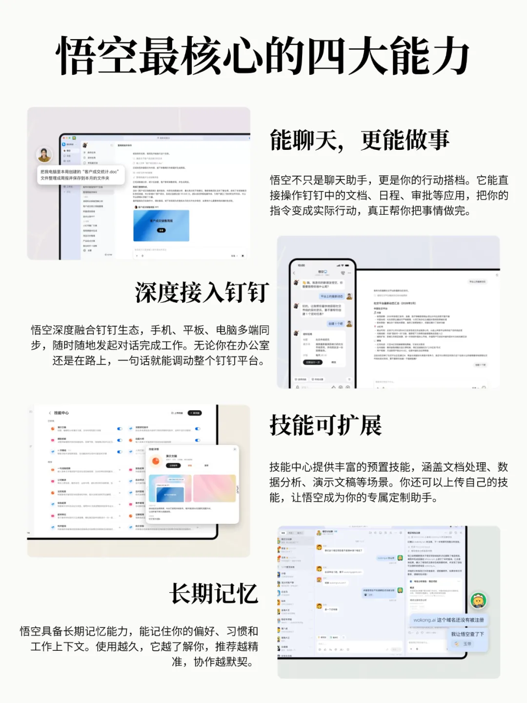 翻开官网”为什么选择悟空”这一栏,能力归纳成四点,每一点都对应着一个企业真实痛点: