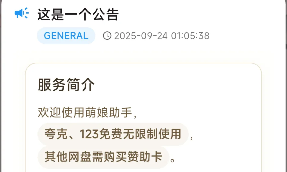 唯一不足的是只有夸克与 123 网盘支持免费解析下载,不限次数与大小;其他网盘需使用赞助卡密。