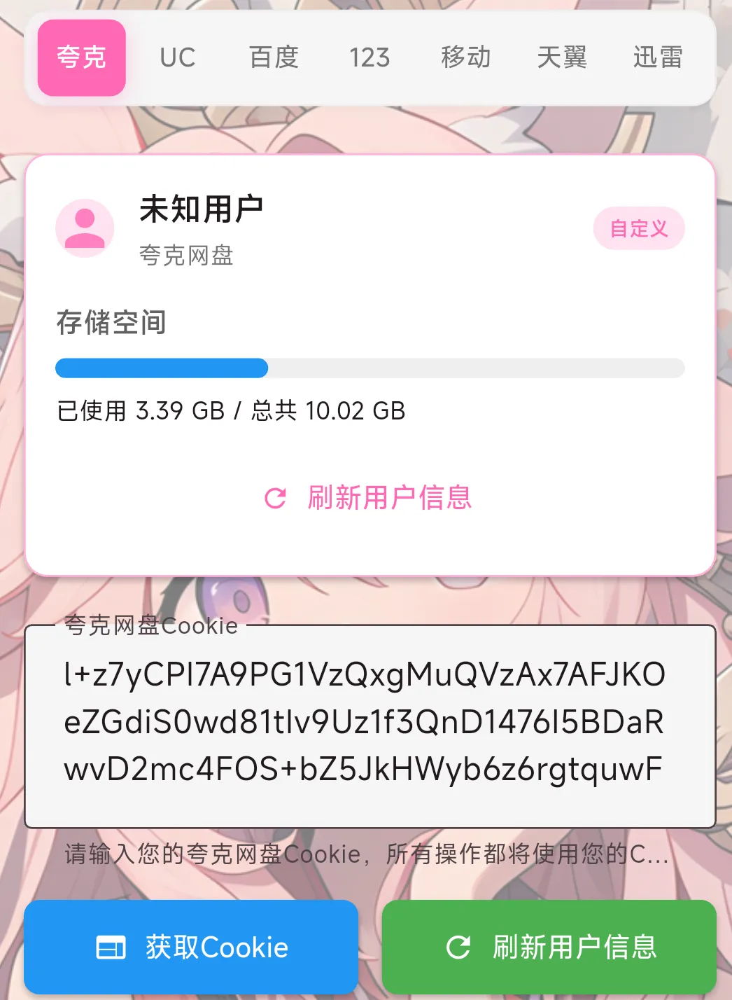 浏览器会打开新页面并登录账号(必须登录,搞机日常是截图码下来,再到夸克网盘扫码登录)。登录成功后点击”使用 Cookie”。