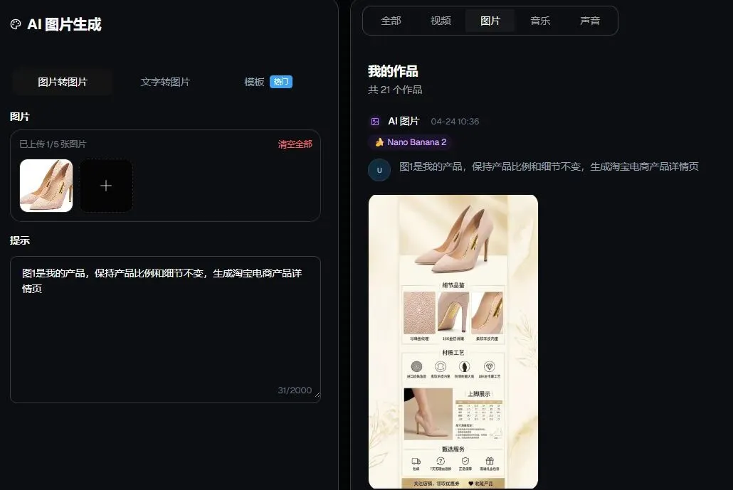 好家伙!做电商还在花钱找设计排详情页?不用摄影、不用模特、不用PS,老黄用自家云镀云AI图文系统,一张产品图,一键直出,全程不用写复杂提示词——零成本搞定。