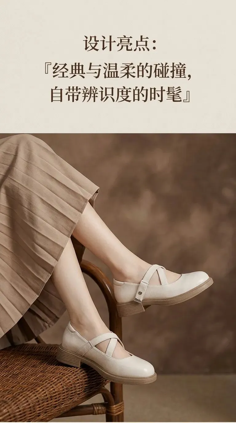 产品主体:米白色交叉绑带、法式复古玛丽珍鞋