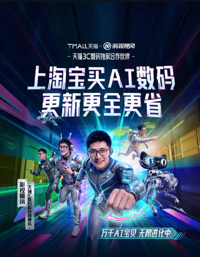 本次独家战略合作,也跳出传统品牌广告框架。天猫为影视飓风,打造了业界首支AIGC明星广告片,演绎天猫平台AI数码品类带来的生活体验趋势。影视飓风作为天猫旗舰新品站台方,为消费者推荐甄选商品。以“内容测评种草——平台供给承接——精准权益促销”的组合策略,辅助消费者决策,为AI硬件从专业关注走向大众购买提供了更具普及性的消费入口。