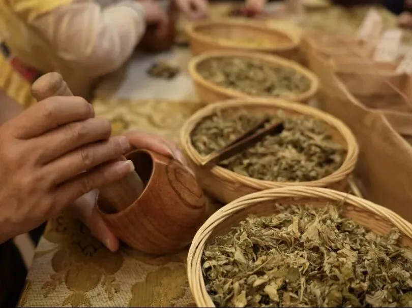 下午可以到东昌阁三楼澄心室或东方梵园酒店,参加非遗养生手作体验:亲手做一个艾草锤,或者调配一个养生香囊,成品带回家,每天闻到药香,都会想起这座山的温柔。