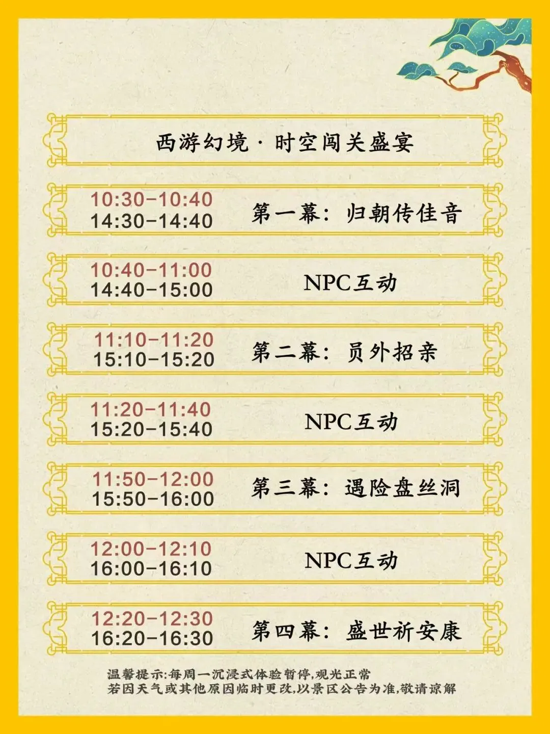 每日滚动上演,无需额外购票,包含在景区门票内。