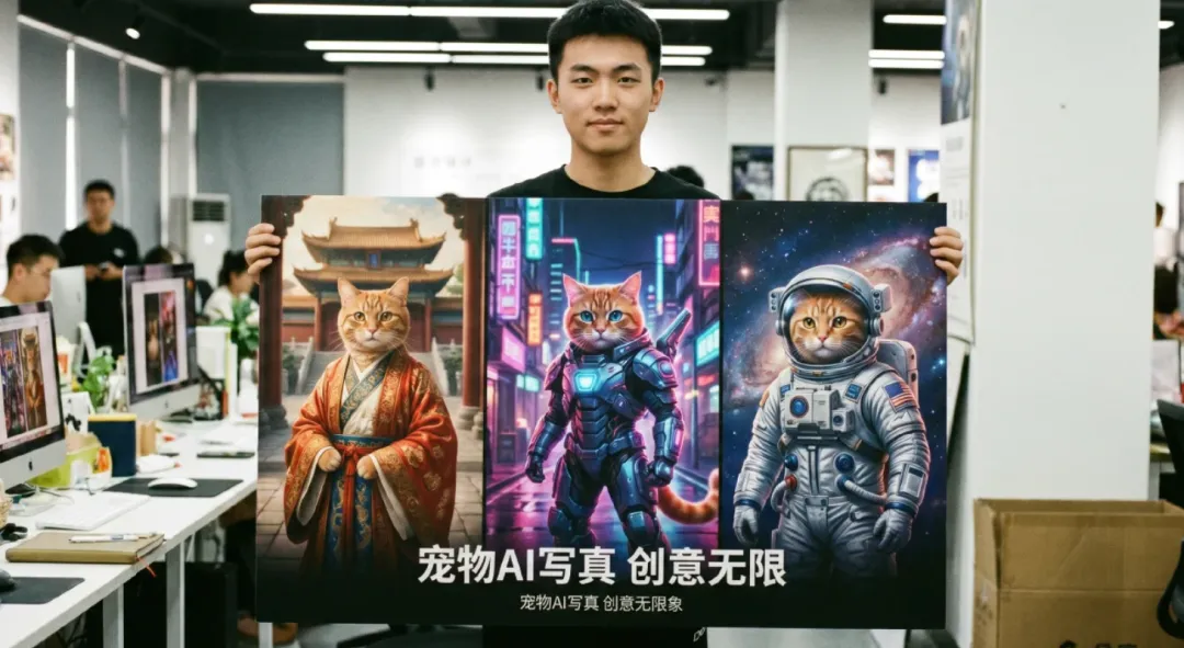 我认识一个做宠物AI写真的朋友,他跟我说,客户愿意花大几百块给狗拍一套写真,理由很简单:比去影楼便宜,比手机拍的好看,发朋友圈有面子。而且宠物不会嫌AI修得不像。