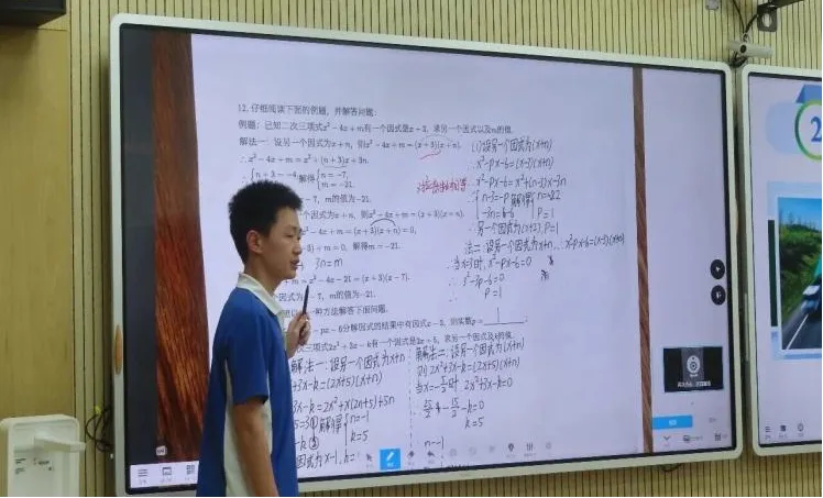 八年级数学《分解因式》:主讲教师、AI智能师与学生小先生协同配合,课堂气氛活跃,学生主动参与,展现出极强的学习内驱力。
