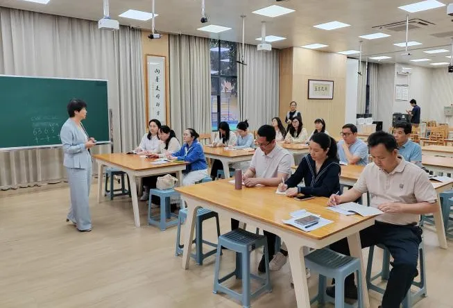 4月1日下午,培训在深圳正式拉开帷幕。首场主题学习《聚焦AI教学工具:AI赋能数学跨学科主题学习》由深圳市南山区小学数学教研员、正高级教师陈清容主讲。陈老师结合丰富的教学案例,深入浅出地展示了AI工具如何在数学学科中实现跨学科融合,激发学生探究兴趣。学员们认真聆听、积极记录,不时就实际教学中的困惑与专家互动,现场学习氛围浓厚。
