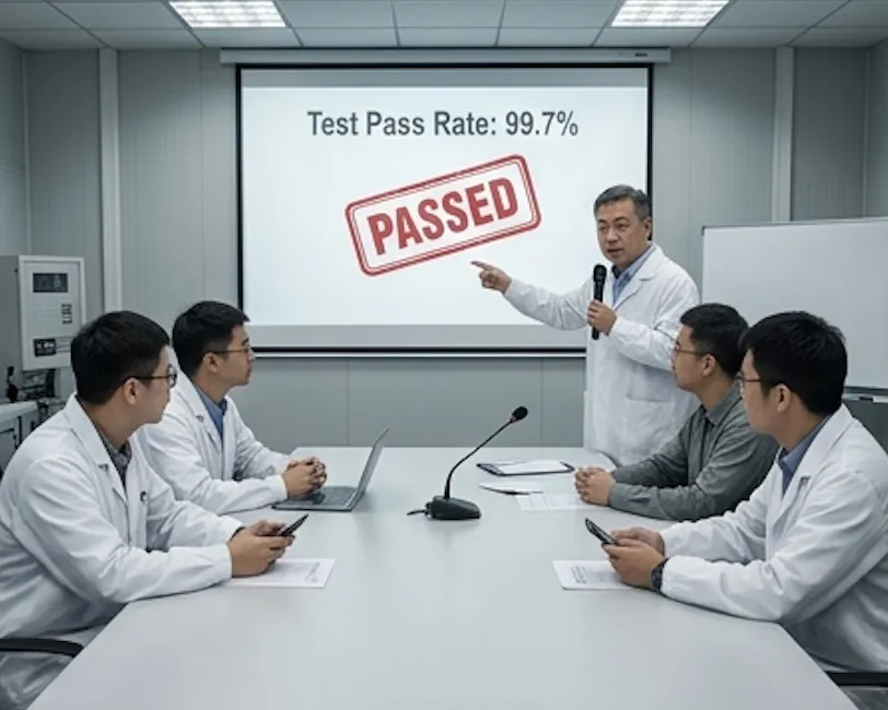 测试组的同事把PPT翻到“测试通过率99.7%”那一页,现场没有人提出任何质疑,主持人说”大家没有异议的话我们就通过了”,然后在表单上签字。