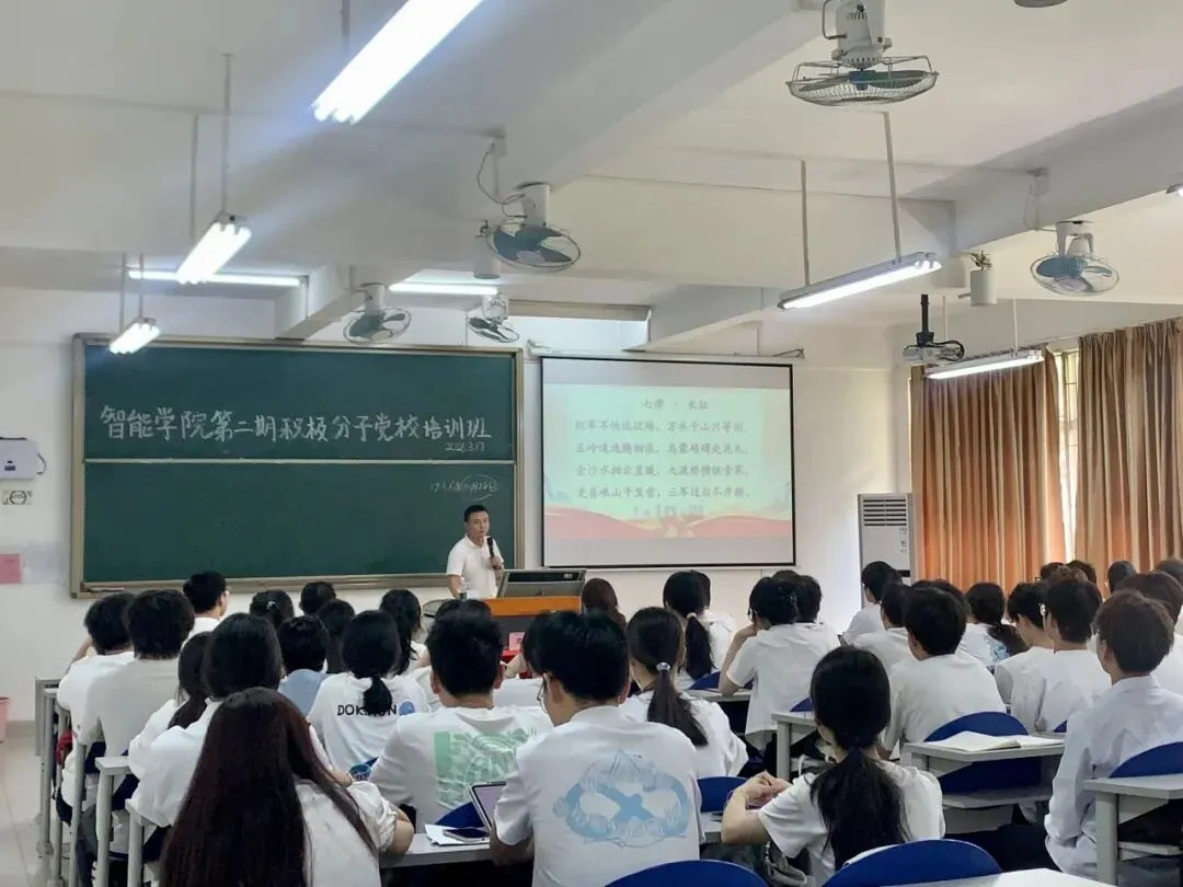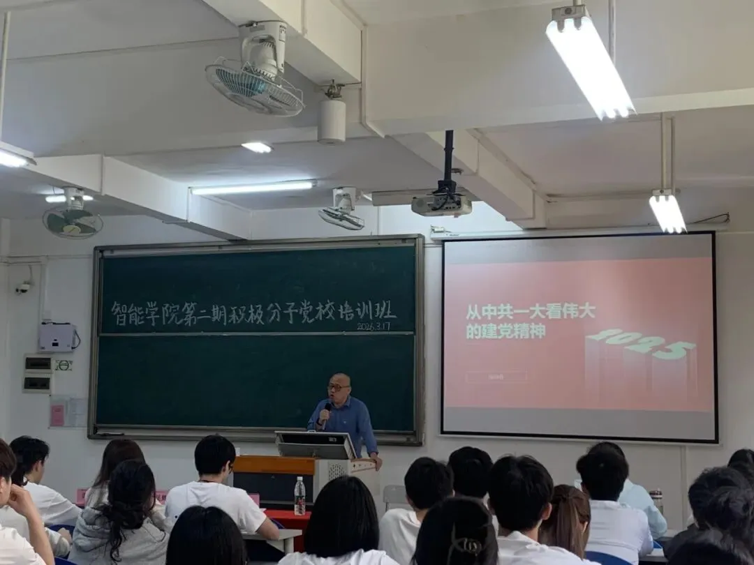 2026年3月17日下午14:00,智能学院吴辉剑书记在T102教室为全体学员带来一场思想深邃、催人奋进的专题讲座。吴书记以深邃的历史视角,带领同学们重温了波澜壮阔的红军长征史,生动解码了伟大长征精神中坚如磐石的理想信念、百折不挠的英雄气概与同人民生死相依的鱼水深情。