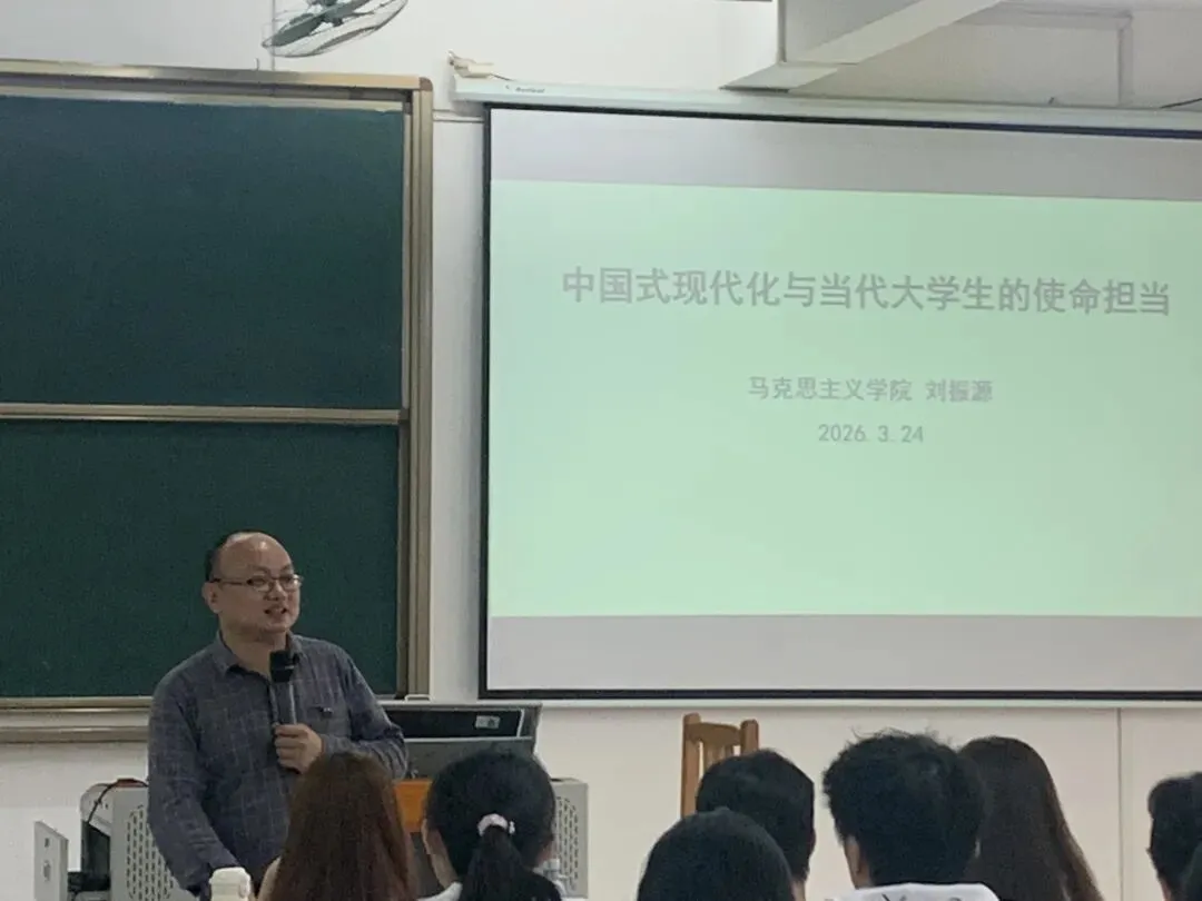 2026年3月24日下午15:00,马克思主义学院刘振源副教授在T102教室为学员们带来一场引人深思的专题讲座。刘老师用详实的史料回顾了中华民族追求美好生活的探索历程,并精辟解读了中国式现代化的五大核心特质。他掷地有声地指出,我们的现代化绝非照搬西方模式,而是深深植根于中国大地的伟大创举,并将复杂的理论命题转化为了生动易懂的语言,带领大家深刻领悟中国式现代化的时代意蕴。