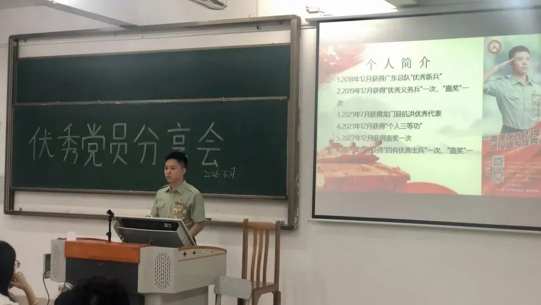 2026年3月27日晚,培训班举办“我与优秀党员面对面”交流会。退伍武警、曾荣立“个人三等功”的陈文广师兄,与拥有4.0优异绩点、8段学生骨干经历且志愿服务时长超300小时的王婷师姐受邀主讲。他们结合切身经历,生动诠释了“退伍不褪色”的铁血担当与全面发展的先锋模样,与入党积极分子们共话新时代的青年使命,为大家输送了满满的精神养料。