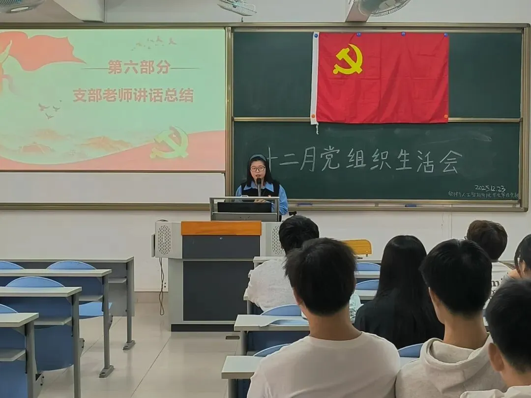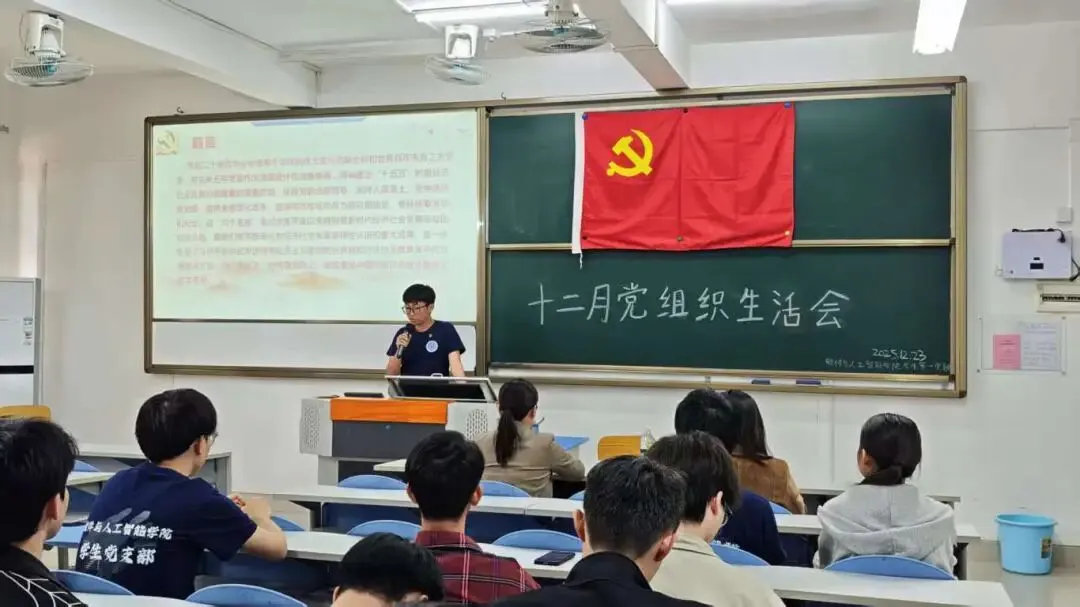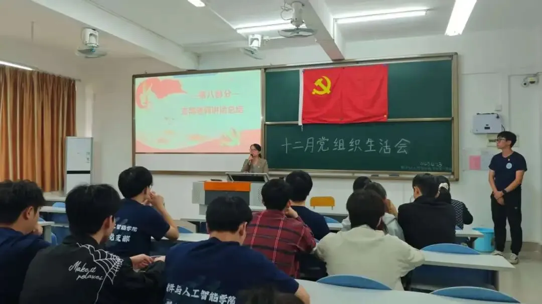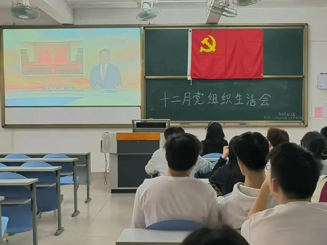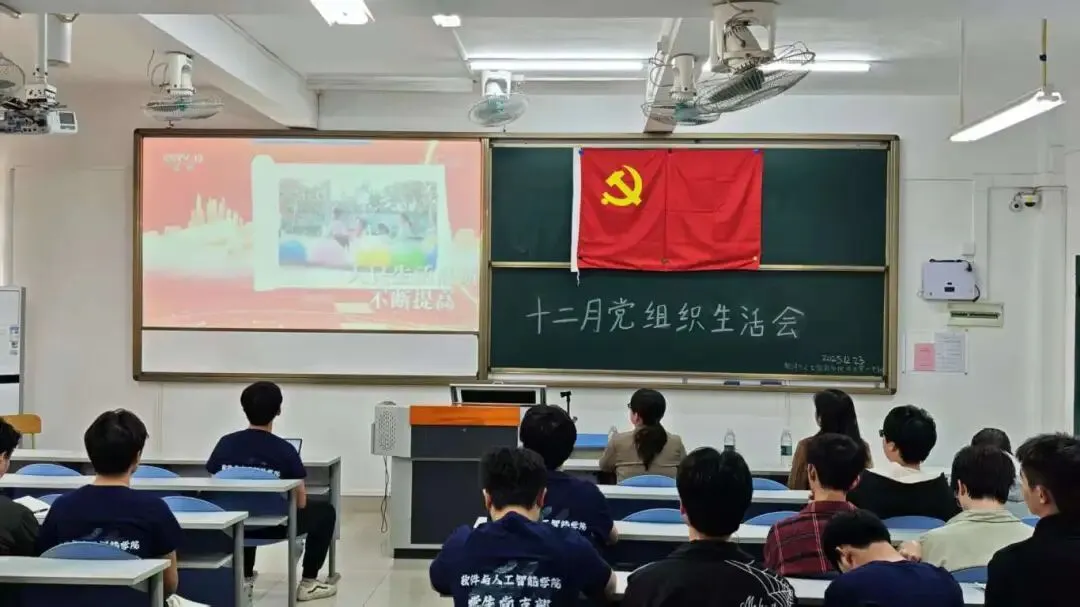 2025年12月23日,软件与人工智能学院学生第一党支部在U103教室开展十二月组织生活会,党支部书记陈玉菲老师、郑妙玲老师、罗蕙老师及全体学生党员参会。会议由黄铿侨同志主持。