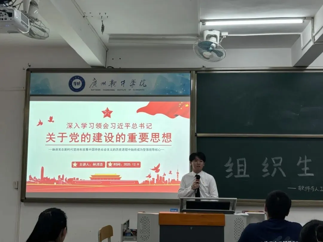 为深入学习领会习近平总书记关于党的建设的重要思想,2025年12月9日,软件与人工智能学院学生第二党支部在U102召开专题组织生活会,党支部书记谭斯韵老师及全体学生党员参会,会议由林泽浩同志主持。