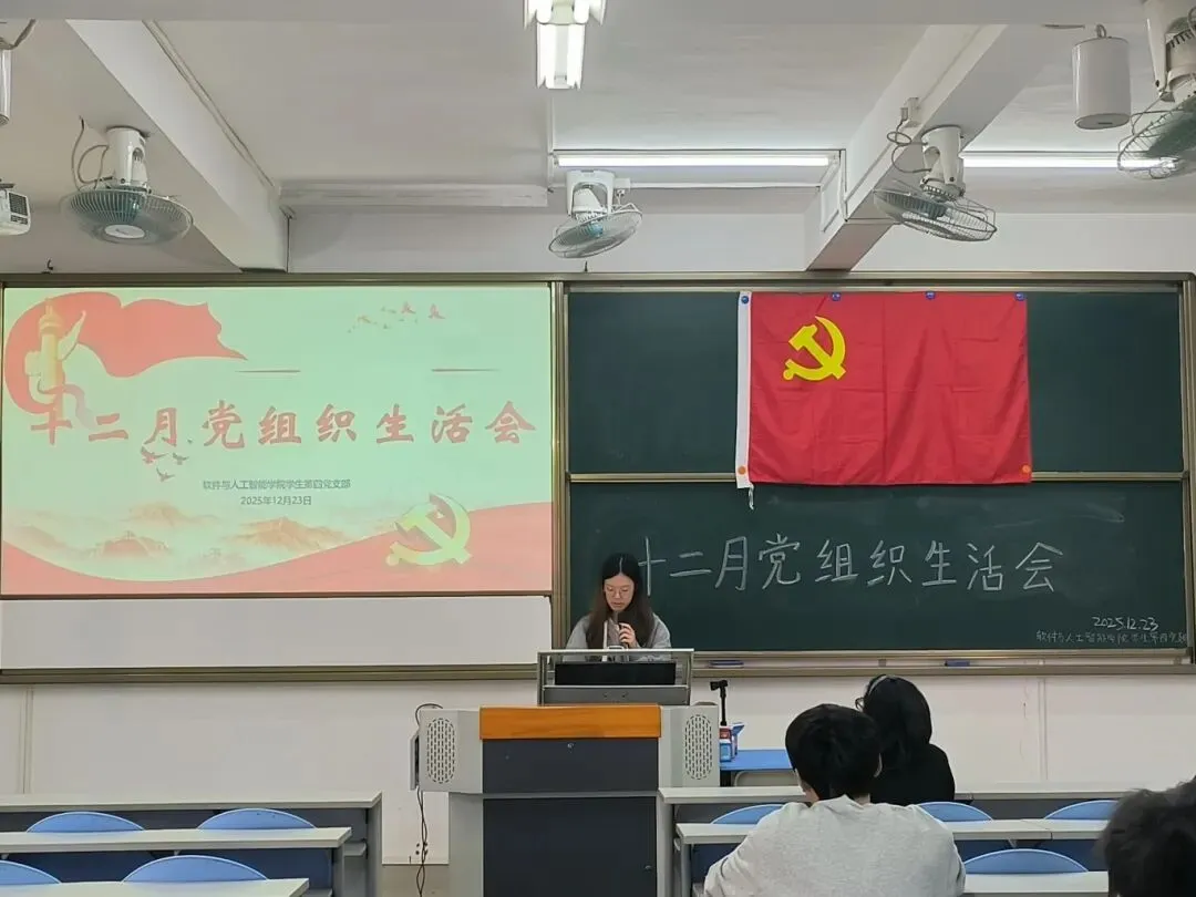 2025年12月23日,软件与人工智能学院学生第四党支部在U101教室召开十二月专题组织生活会,党支部书记刘家敏老师及全体学生党员参会。会议由邓嫦怡同志主持。