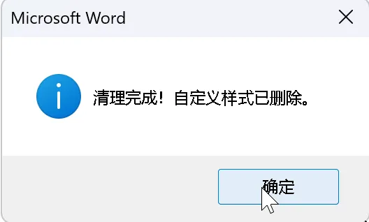 至此,自动删除非内置样式就完成了。比方案一少按很多确认键。更高效。