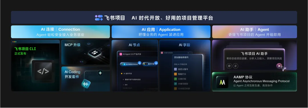 飞书项目打造全新的「AI应用」开放体系,让专业智能体更可复用地融入工作流。其中: