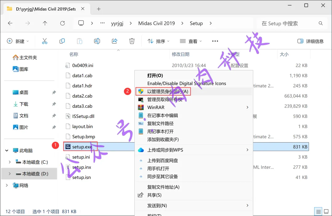 4.找到【setup.exe】安装程序,并右键点击【以管理员身份运行】