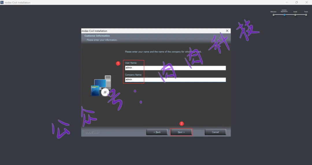 9.User Name和Company Name随意输入英文,再点击【Next】