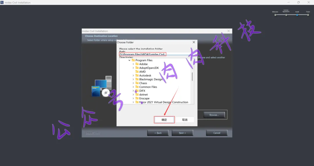 11.我把软件安装在D盘创建的一个文件夹内,可以直接选中安装路径开头的【C】并改成【D】,文件夹名建议跟我保持一致,不要有中文,也不要有空格,防止安装出错;再点击【确定】