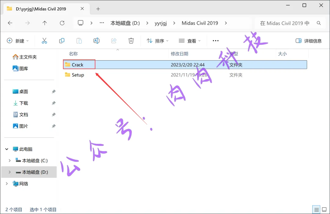 31.返回到Midas Civil 2019文件夹,双击打开【Crack】文件夹