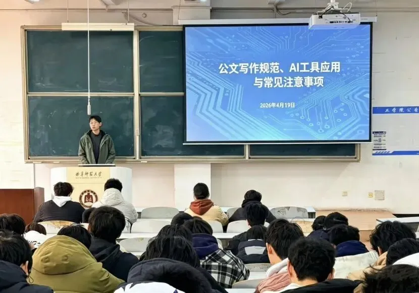 会上,孙威龙首先讲解了公文写作的规范,明确了页边距、字体字号、标题层级、段落排版等具体标准,并介绍了学校正版WPS教育版的功能与使用方法。随后,他分享了AI办公工具的实用技巧,引导同学们科学运用辅助工具,严守工作规范与学术诚信底线。他强调,学生骨干在通知传达、材料汇总、资料整理等日常工作中务必严谨细致、规范高效。最后,他勉励全体学生干部要勤学善思、学以致用,在实践中不断提升综合工作能力。