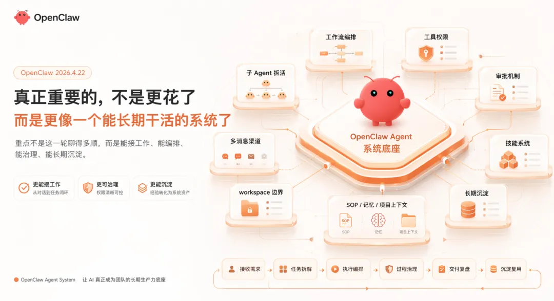 OpenClaw 2026.4.22 真正重要的,不是更花了,而是更像一个能长期干活的系统了。
