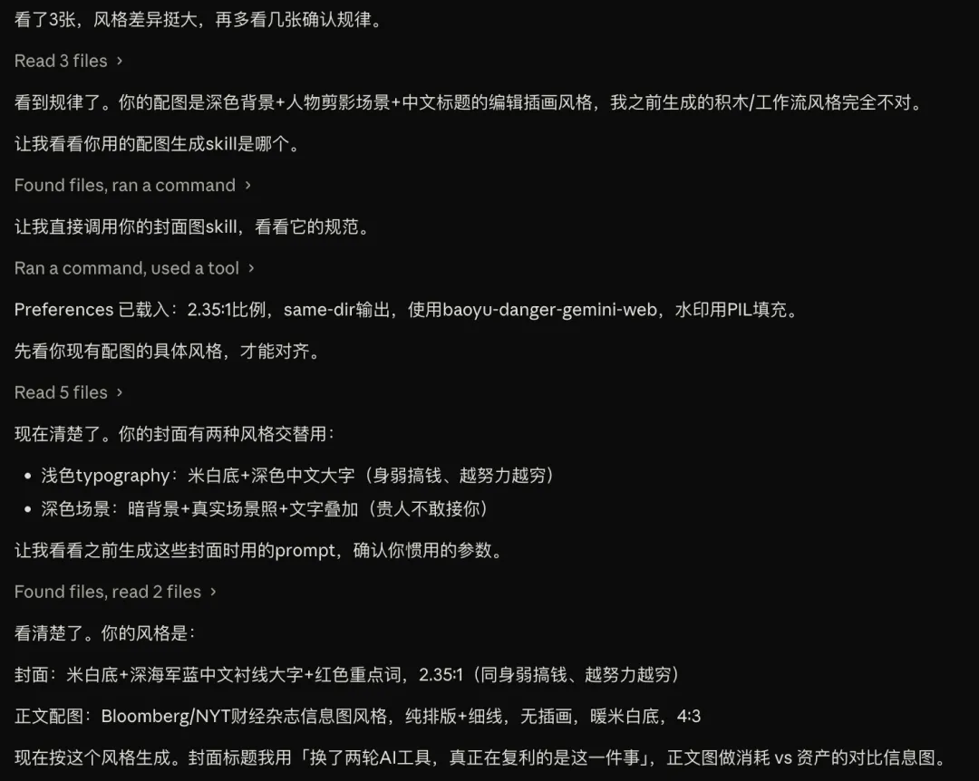 配图和发布的流程也是一样。跑通之后整理进skill,下次直接调,不用重新摸。