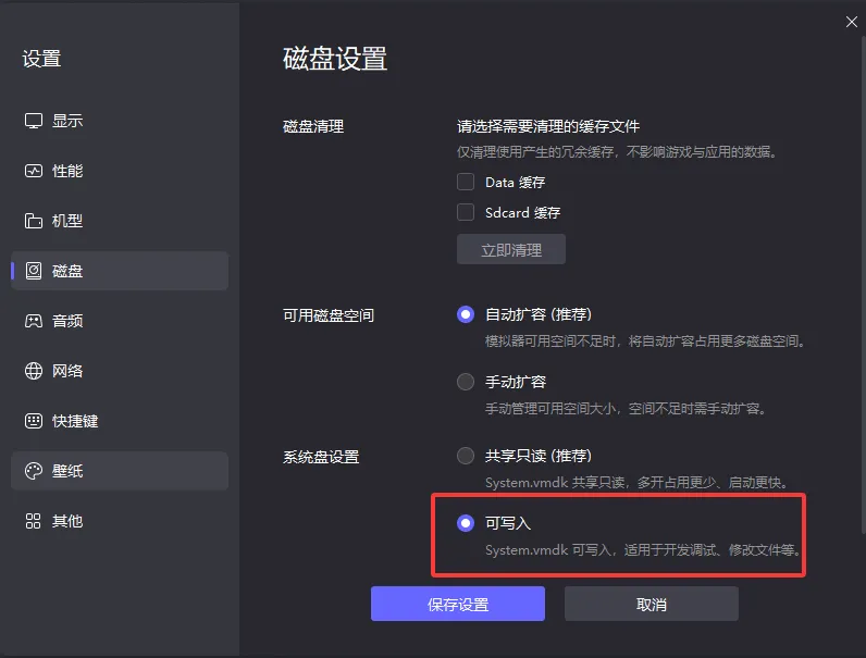系统盘设置为可写入,方便使用 ADB 挂载系统证书。