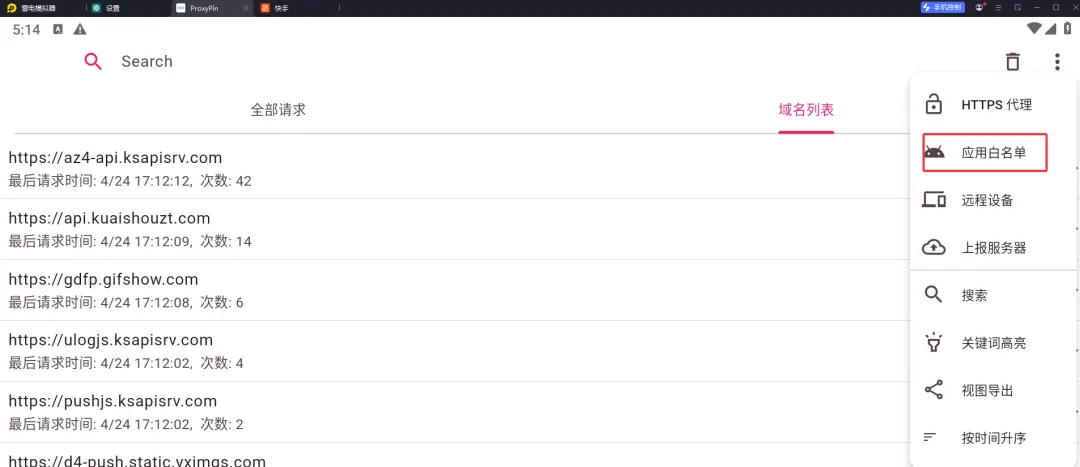 也可以设置应用白名单,只对感兴趣的应用进行抓包: