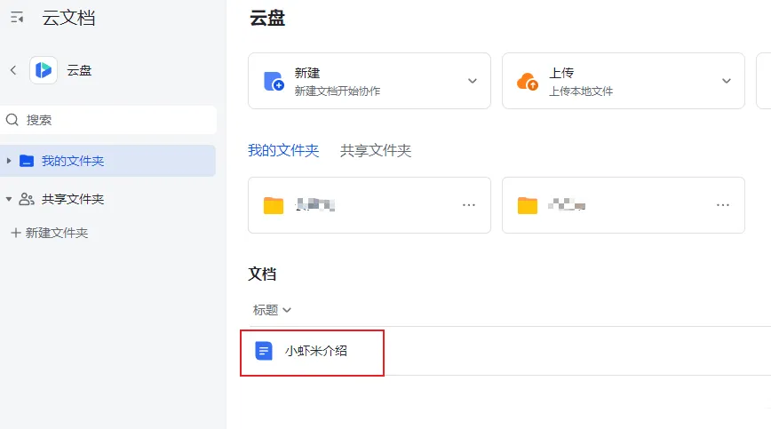 Step3:等它回复我说已经创建好了之后,我到飞书云盘里查看确认,结果是真的按我要求创建了文档并写入了它的个人介绍。