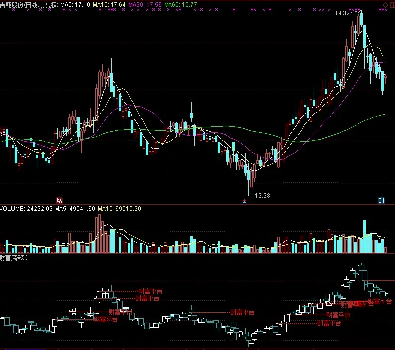 这个指标主要通过价格和成交量的变化,结合特定的算法,试图在图表上标识出可能的“财富平台”(即底部区域)和压力支撑情况。注意:所有指标均为辅助工具,不构成任何投资建议。