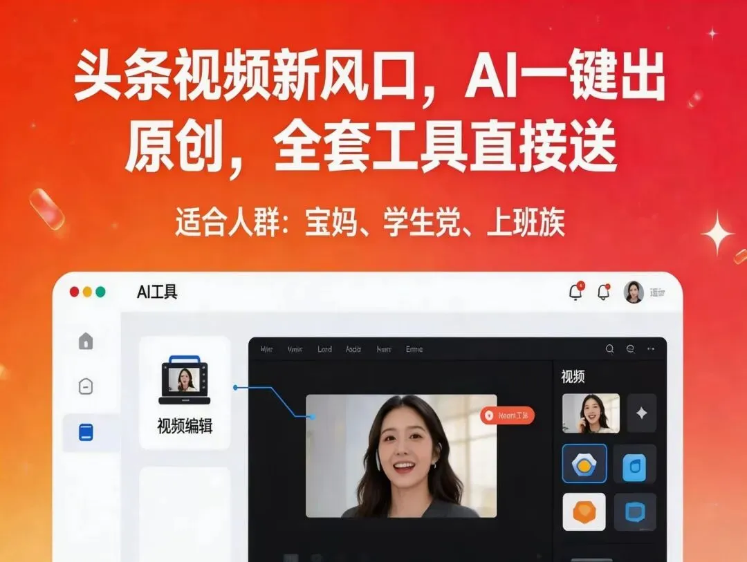 《头条视频新风口 AI一键出原创 全套工具直接送 人人可做》