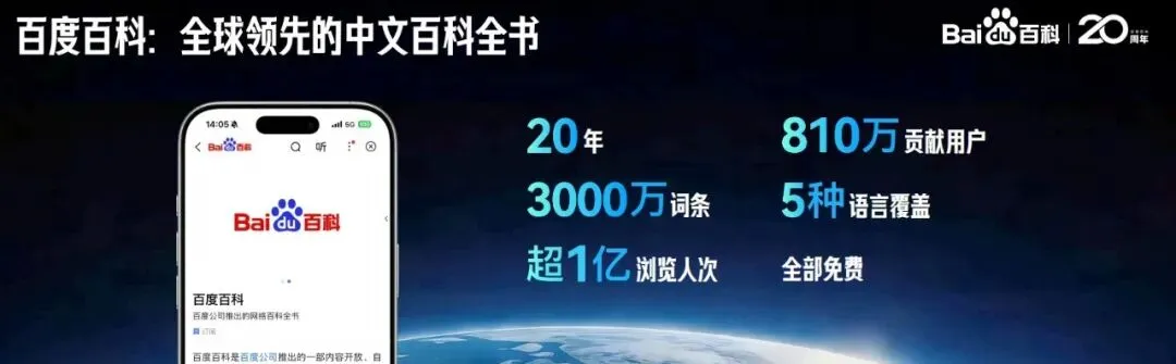 “我们不仅看内容,更看‘出身’。只有那些来自:权威专业领域、时效性强的信息源,才有资格进入候选池。”李小婉谈到,凭借严格信源准入把控、交叉验证机制,再加上自动巡检系统,三道权威过滤把关,百度始终珍视着自身内容的确定性与安全性。尤其在内容信源上,百度自家产品百科就非常能打。仅从规模和收录范围上看,百度百科堪称国内外权威知识的百科全书,目前词条总量已突破3000万,拥有英、法、日、俄、西班牙语五门语言,再加上超810万用户持续内容“充电”,每秒就能诞生一个新版本词条,热点内容更能实现分钟级更新。